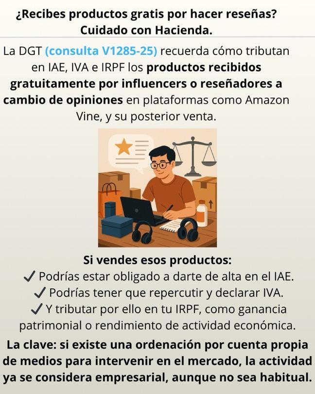 IAE/IVA/IRPF. RESEÑAS. La DGT estudia la tributación de productos recibidos y vendidos por usuarios del programa Amazon Vine: implicaciones en IAE, IVA e IRPF