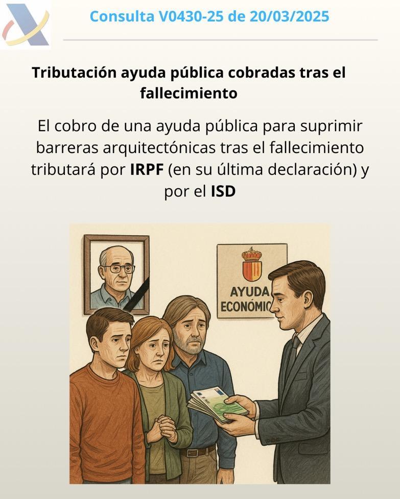 ▪ ¿Deben los herederos tributar por la ayuda recibida tras el fallecimiento del causante? ¿Corresponde incluirla en el IRPF o en el Impuesto sobre Sucesiones y Donaciones, ya presentado?