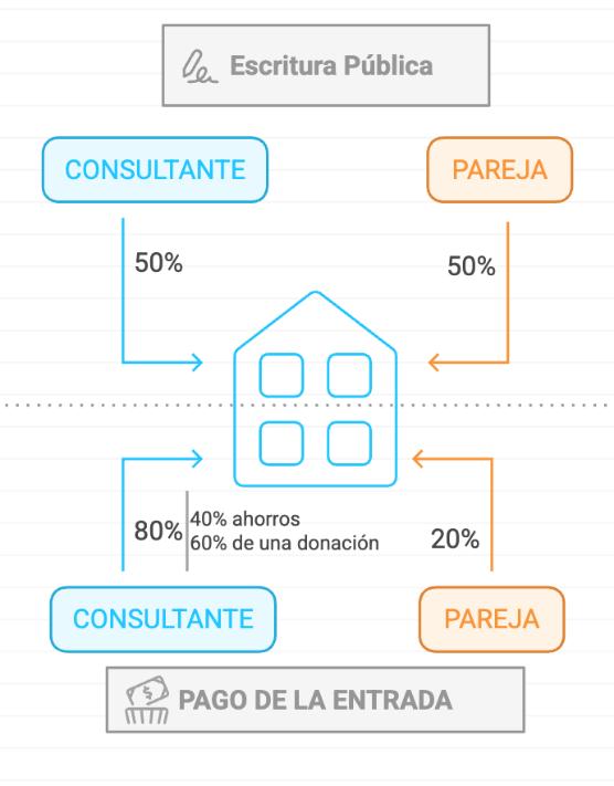 o su pareja el 80%, de los cuales el 60% proviene de una donación de la familia de este último y el 40% de sus ahorros.