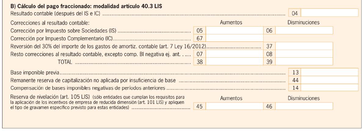 1.2.Modificación al alza de la cuota íntegra del ejercicio que se ha de tomar como base para la autoliquidación del pago fraccionado cuando se aplica la modalidad del artículo 40.2.