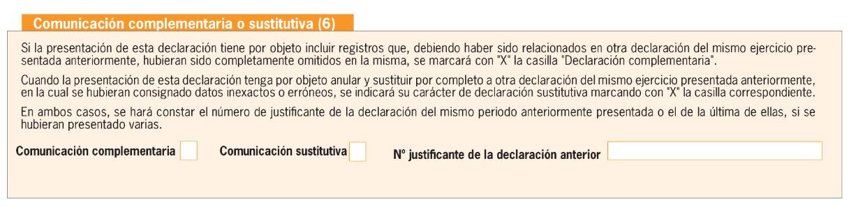 En este supuesto, en el apartado 7 Complementaria, se deberá hacer constar el código electrónico asignado a dicha declaración.