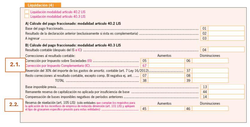 Se restringe la aplicación de los ajustes por Reserva de Nivelación a las entidades que cumplan los requisitos para ERD y que apliquen el tipo de gravamen específico, es decir, parece, que las MICROEMPRESAS, aunque pueden optar por la determinación de la base del pago de gravamen de acuerdo con la modalidad del artículo 40.3. no podrán aplicar el incentivo de Reserva de Nivelación en la determinación del pago fraccionado.