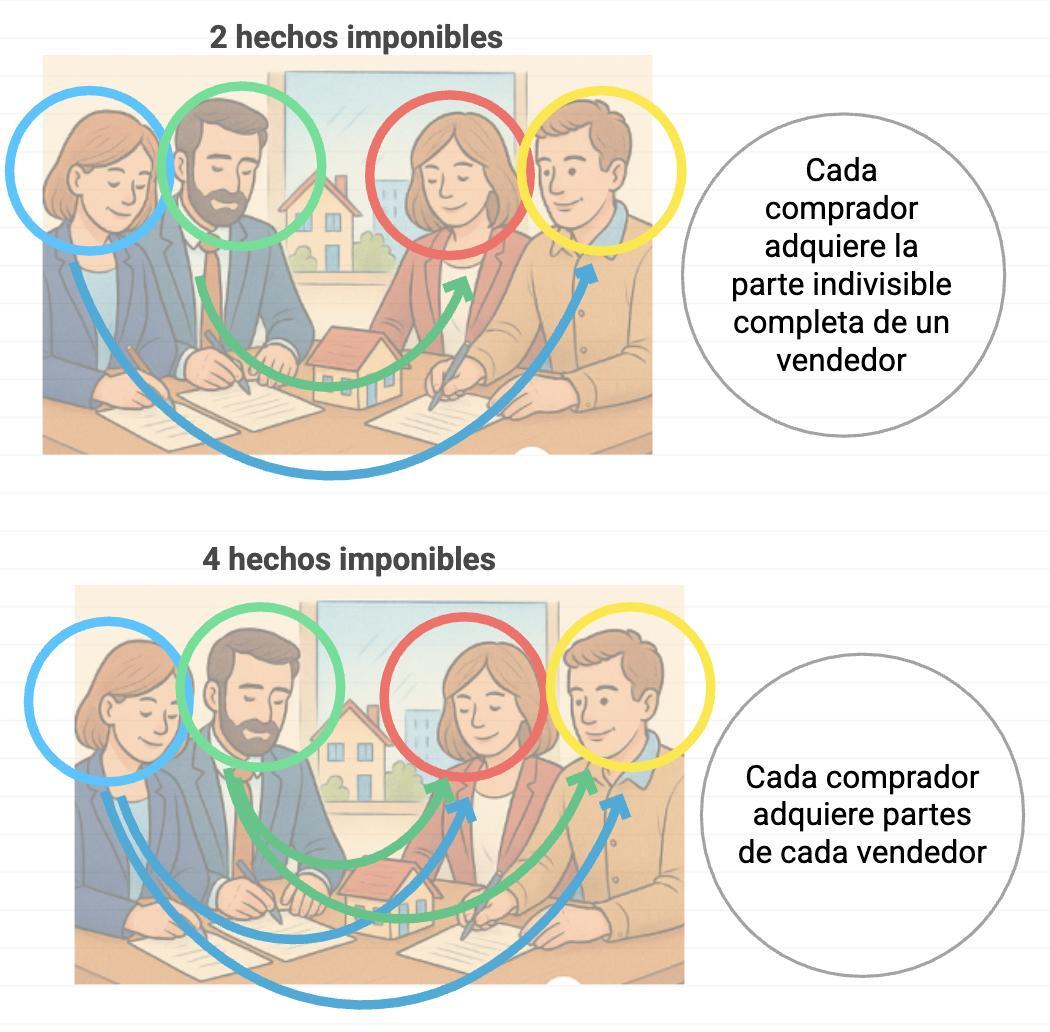 ▪ Dos hechos imponibles: si cada comprador adquiere la totalidad de la parte indivisa de uno de los vendedores.