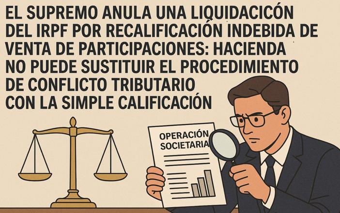 LGT. RECALIFICACIÓN. El Supremo anula una liquidación del IRPF por recalificación indebida de venta de participaciones: Hacienda no puede sustituir el procedimiento de conflicto tributario con la simple calificación
