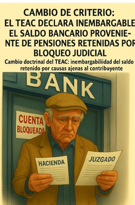 El TEAC rectifica su octrina previa, reconociendo que el saldo no dispuesto de pensiones ya sujetas a embargo, retenido involuntariamente por mandato judicial, mantiene su protección jurídica como cantidad inembargable.