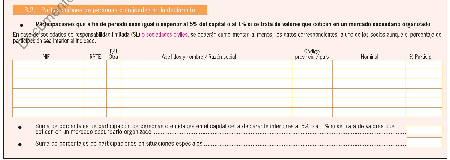 Se establece para las sociedades civiles, la obligatoriedad de cumplimentar el cuadro «B.2 Participaciones de personas o entidades en la declarante» de la página 2 del modelo 200, al menos con los datos correspondientes a uno de los socios.