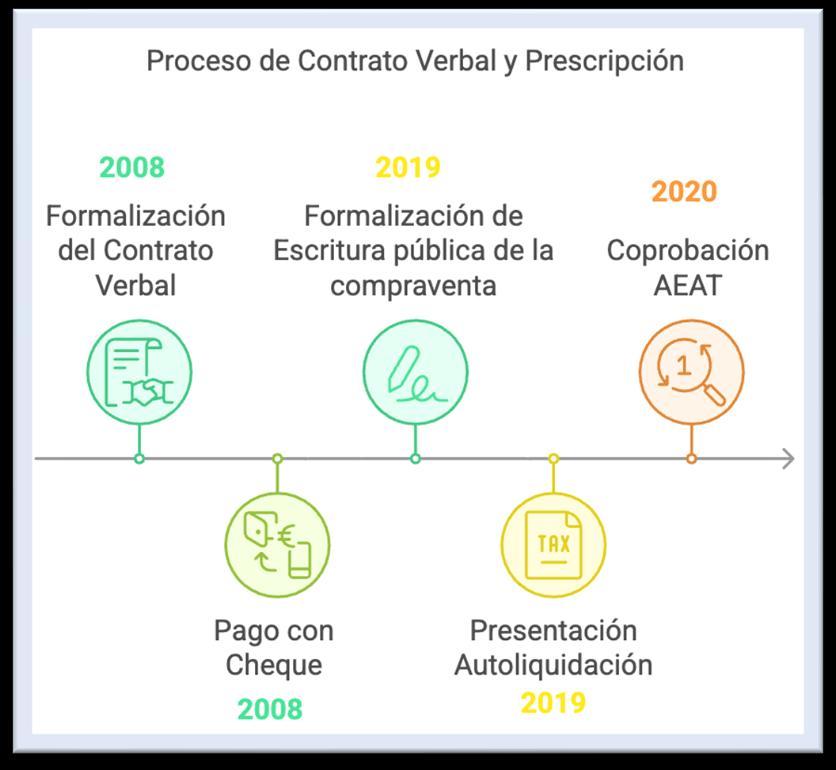 ▪ El 18 de noviembre de 2020, la Administración inició un procedimiento de comprobación limitada, concluyendo con una liquidación de 739,13 euros por considerar que el devengo del impuesto se produjo en 2019, fecha de la escritura pública, y que no se había acreditado la prescripción alegada.
