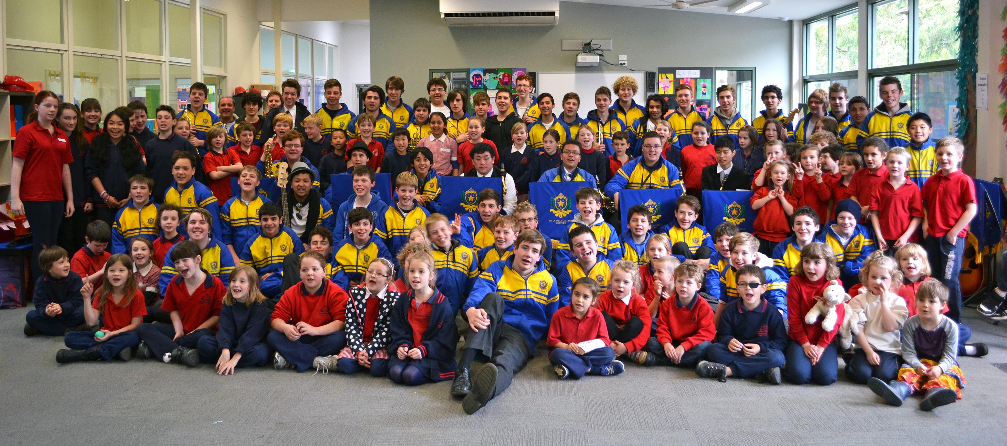 Pictured bottom: De La Salle music students and staff with the students of Warburton Primary School