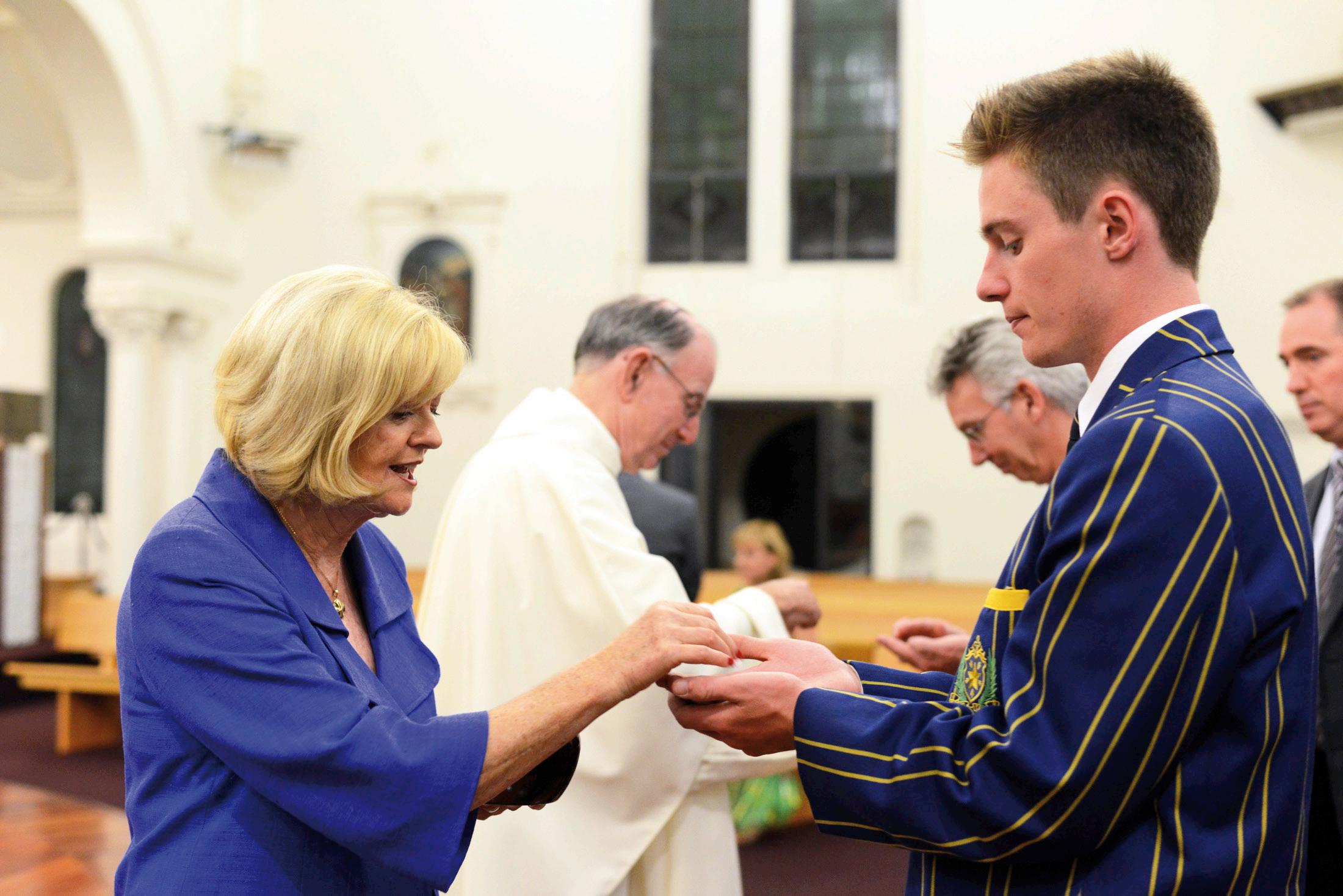 During the Mass, the official commissioning took the shape of a symbolic handing over ceremony in which, The Acting Provincial of the De La Salle Brothers for the District of Australia, PNG, New Zealand and Pakistan, Br Christopher Gorringe and student leaders Brock Augustynsk, James Biviano and the 2014 College Captain, James Benton sought Mr Houlihan’s commitment to the position of Principal.
