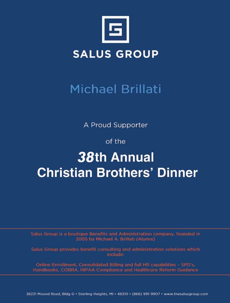 Thank you for joining us at the 38th Annual Christian Brothers’ Dinner. Your presence and generosity allow us to carry out the Mission of our Founder, St. John Baptist de La Salle, who answered a call from God to educate students, regardless of their financial means.