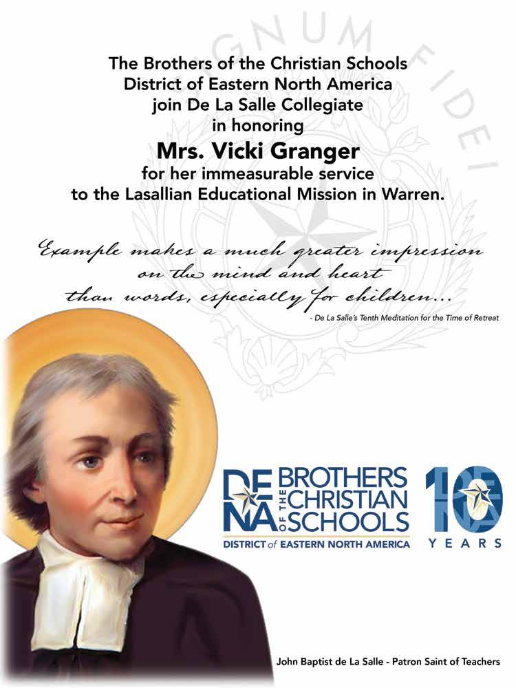 53 Congratulations to Vicki Granger From The De La Salle alumni a ssociation! Save These Dates: