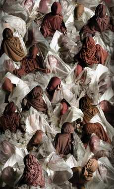 Los muchachos se vieron a la cara y luego se sentaron en el suelo a una señal de los abuelos/padres quienes entonaron cánticos desconocidos.