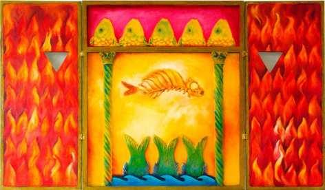El Gran Omó accionó unas llaves viejas y grandes. Se oyó rechinar de fierros, de óxido, y un vaho de vejez nos saltó a la cara. Seguí su cuerpo enorme que resoplaba. Una gran oscuridad nos rodeó. Sólo sentía aquella gran ballenatragandoyexhalandolaoscuridad.Su aceite expandido en un espacio que no se podía medir.Avanzaba lento, tropezando con trastes que sonaban desde otra edad. Después de un tiempo, quizás un minuto o tal vez media hora, vi su silueta recortada contra un resplandor amarillo. Lo rodeé, tan gordo era, y me di cuenta que en sus manos había una vela.Remarcabalosrasgosdesucara,chatos, redondeados,hieráticosentresombrasyluces.