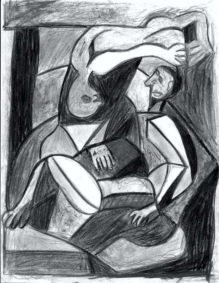 Lerevolvíaelnegrocabelloconlosdedos, distraídamente,mientrasélsesentabaentresus piernas,dándolelaespaldaconlosbrazosapoyados sobrelasrodillasabiertasdeella.