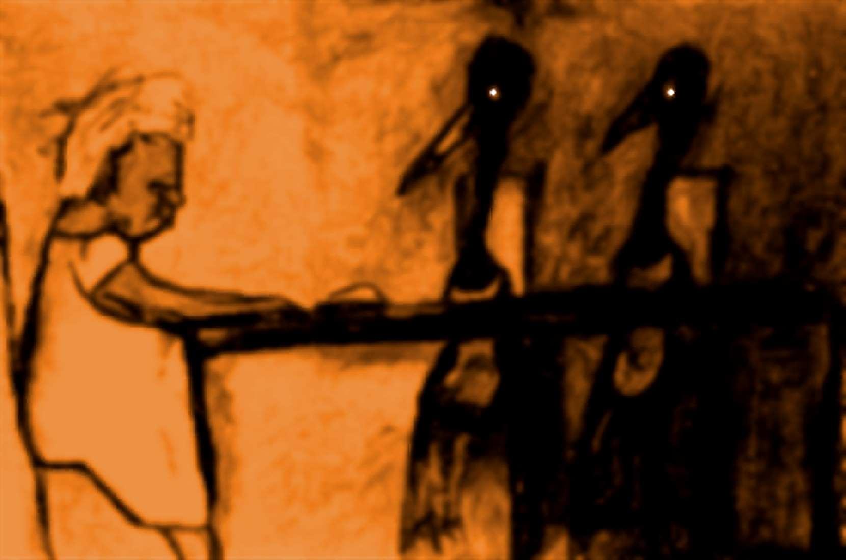 Unabrazomortaleinfinitolosinmortalizóen lasfotosdelosforensesqueseacercarondespués:la cabezadeélreposandosobreelvientreabiertoy sangrantedeella,ylasmanosdeellaalrededordesu pechoconlacabezacaídaenunánguloquesemejaba unpostrerobesoarrancadodesdelamuerte.
