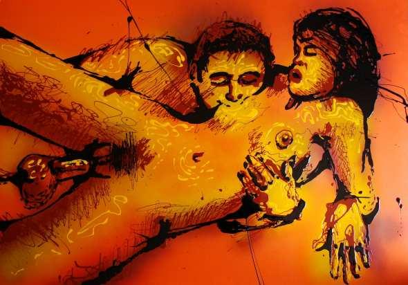 En los museos se guardan en las bodegas loscuadrosylasesculturas.Hoylasobrasdearte son las que se hacemos con el amor carnal. En todas las salas existe la misma exposición con diferentes autores y reveladores títulos "Así fue nuestraprimeravez","Asíselachupeenunbaño público", "Así hacemos el amor cuando le ponemos seguro a la puerta", “Así brinco sobre él", "Así acarició sus nalgas con mi verga", "Con estacogidanosenamoramosparasiempre".Todos los artistas permitimos que nuestras obras sean fotografiadas con flash y grabadas con los celulares. "Suban las imágenes al face, al twitter, al youporn, el amor en carne propia merece ser vistoportodoelmundo",gritamosconelegoque palpita en nuestros penes y nuestras vaginas.