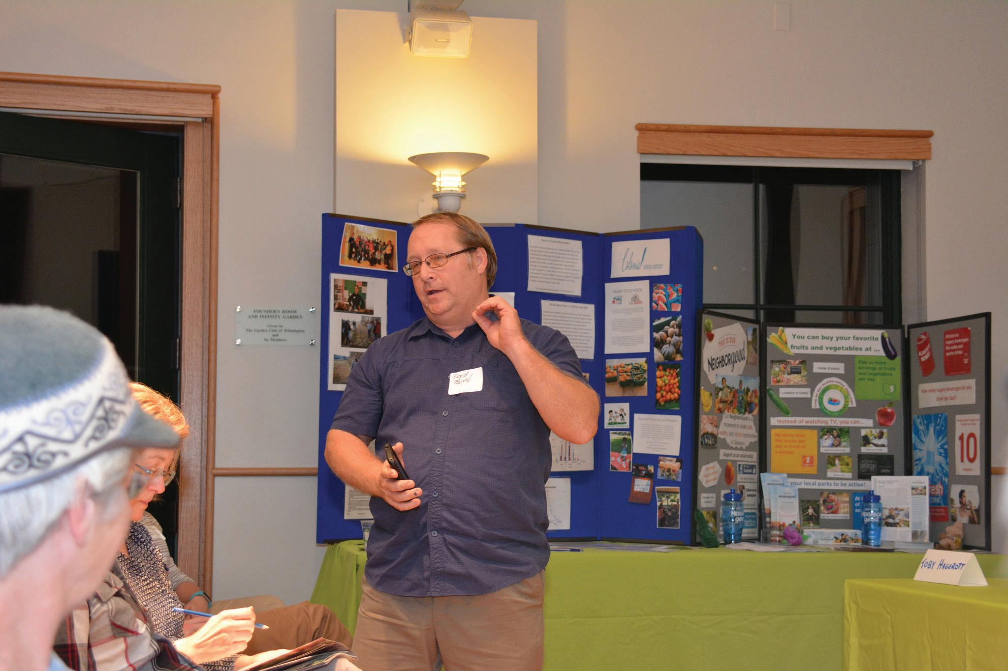 DFB member David Marvel addresses the crowd at an Ag Week seminar at the New Castle Conservation Building.