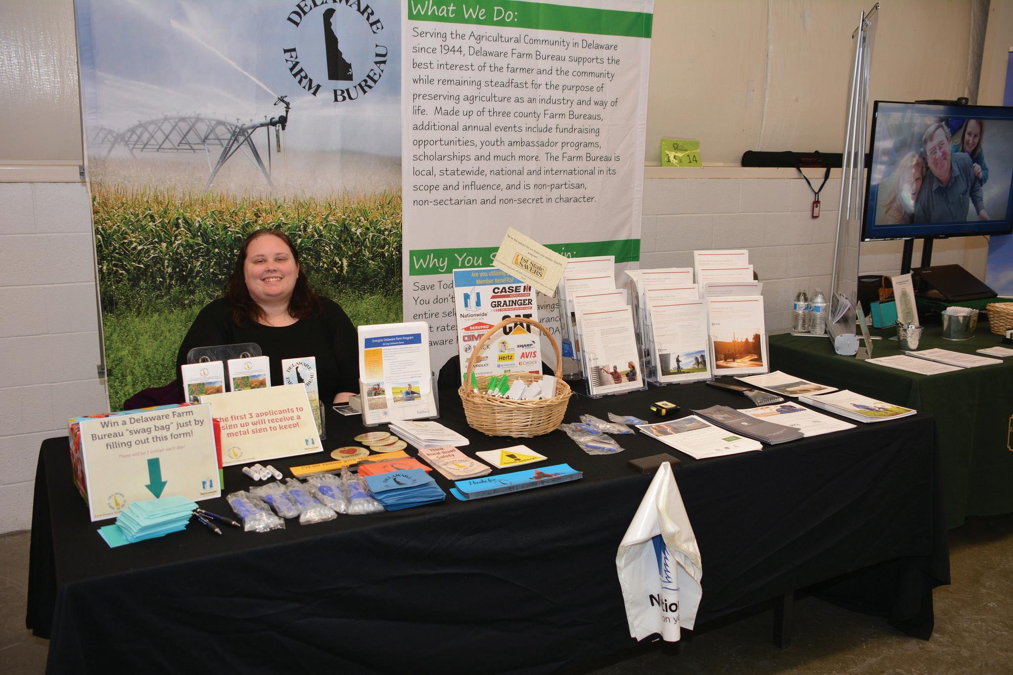 Marketing Assistant Heather Kline sits at the Delaware Farm Bureau exhibit during Ag Week at the Delaware State Fair Grounds.