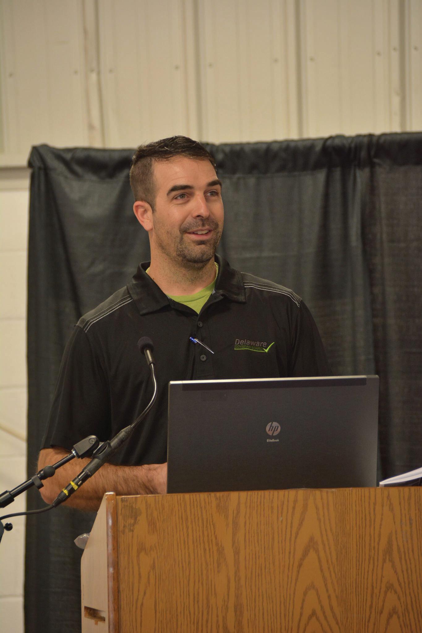Sussex County Farm Bureau Director and Delaware Soybean Board Chairman Jay Baxter addresses the crowd at Delaware Ag Week during the Agronomy and Soybean Sessions.