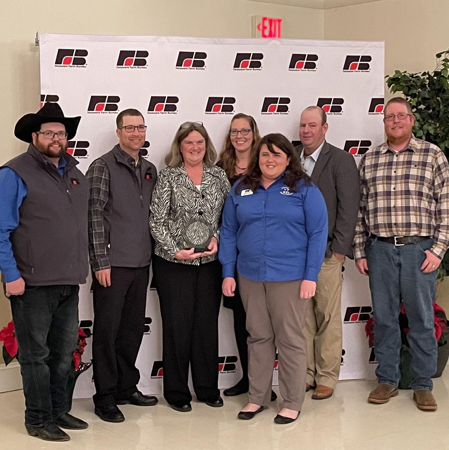 Members of the Young Farmers and Ranchers Committee stand with Nationwide Representative Margie Chase as DEFB honors her as the YF&R Supporter of the Year..