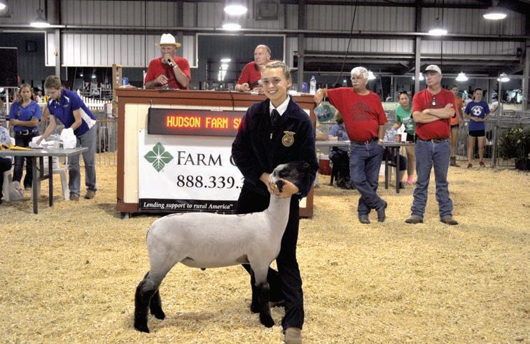 Madison Cook stands with her Grand Champion Market Lamb. Madison also received the Samuel “Sammy” W. Tatman III memorial plaque, presented by the Tatman Family.