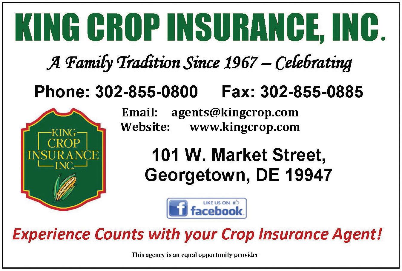“King Crop Insurance started in 1967 with a strong belief in the future of crop insurance and continues to believe in the value of the program as it serves neighbors and the network of farmers on Delmarva,” according to their website.