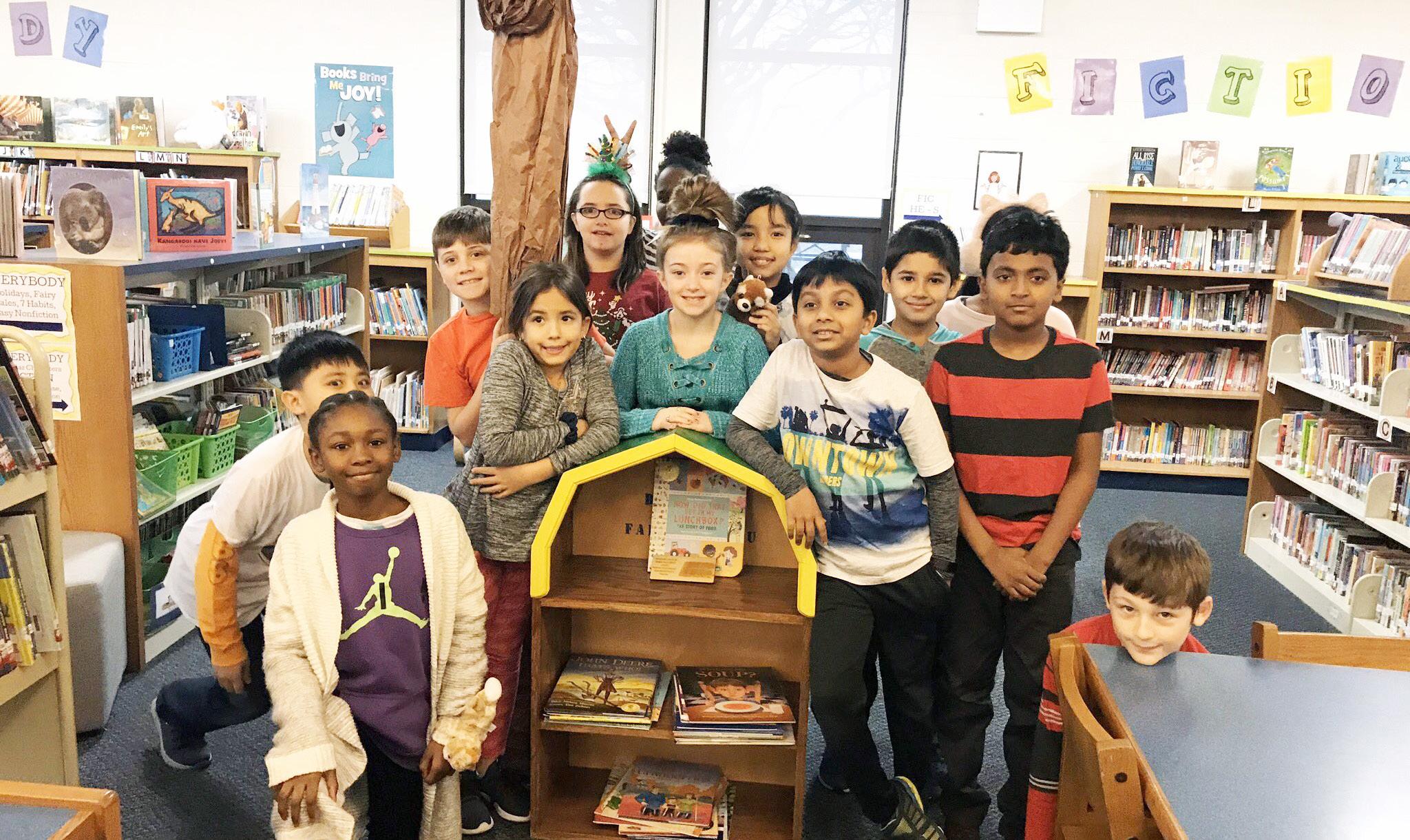 Above: Students from Linden Hill Elementary School in Wilmington of the Red Clay School District stand next to a book barn delivered in December 2019.