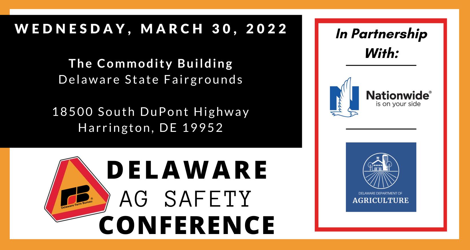 The Delaware Farm Bureau's Promotion and Education Committee is excited to announce this year's Ag Safety Conference scheduled for Wednesday, March 30 from 8:30 a.m. to 2 p.m. in the Commodity Building at the Delaware Fairgrounds in Harrington — in person.