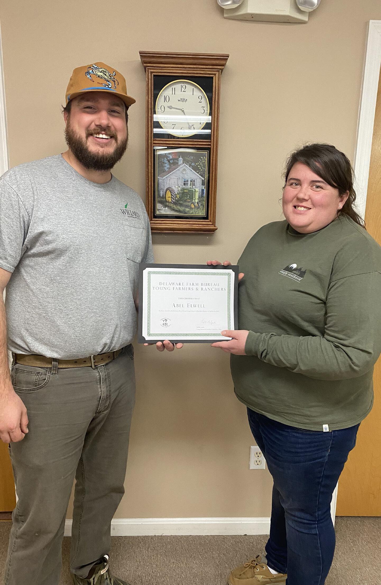 Abel Elwell has worked hard to further the mission of the Young Farmers & Ranchers Committee, a group within the Delaware Farm Bureau, and improve the agriculture industry. This year, he was recognized for his efforts.