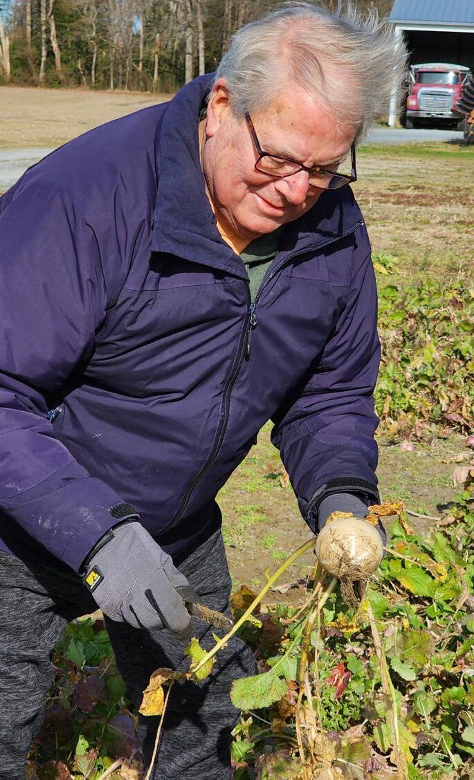 Bill Mahan helps glean turnips during a recent gleaning trip.