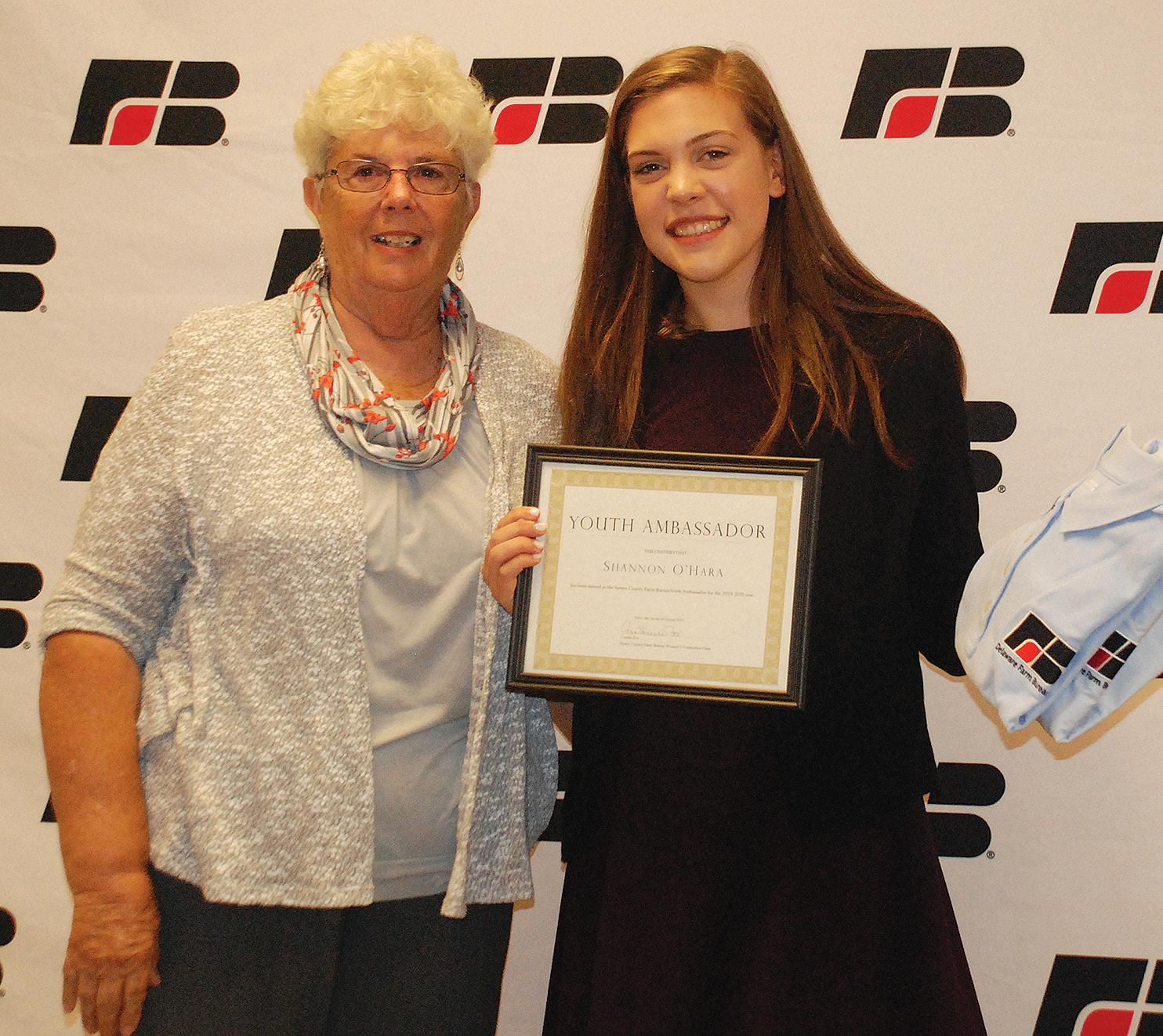 Laura Hill, Delaware Farm Bureau vice president, introduced the Distinguished Service to Agriculture Award winner, Barbara Sapp, who trained Hill to take over chairmanship of the DFB Food Booth at the Delaware State Fair.