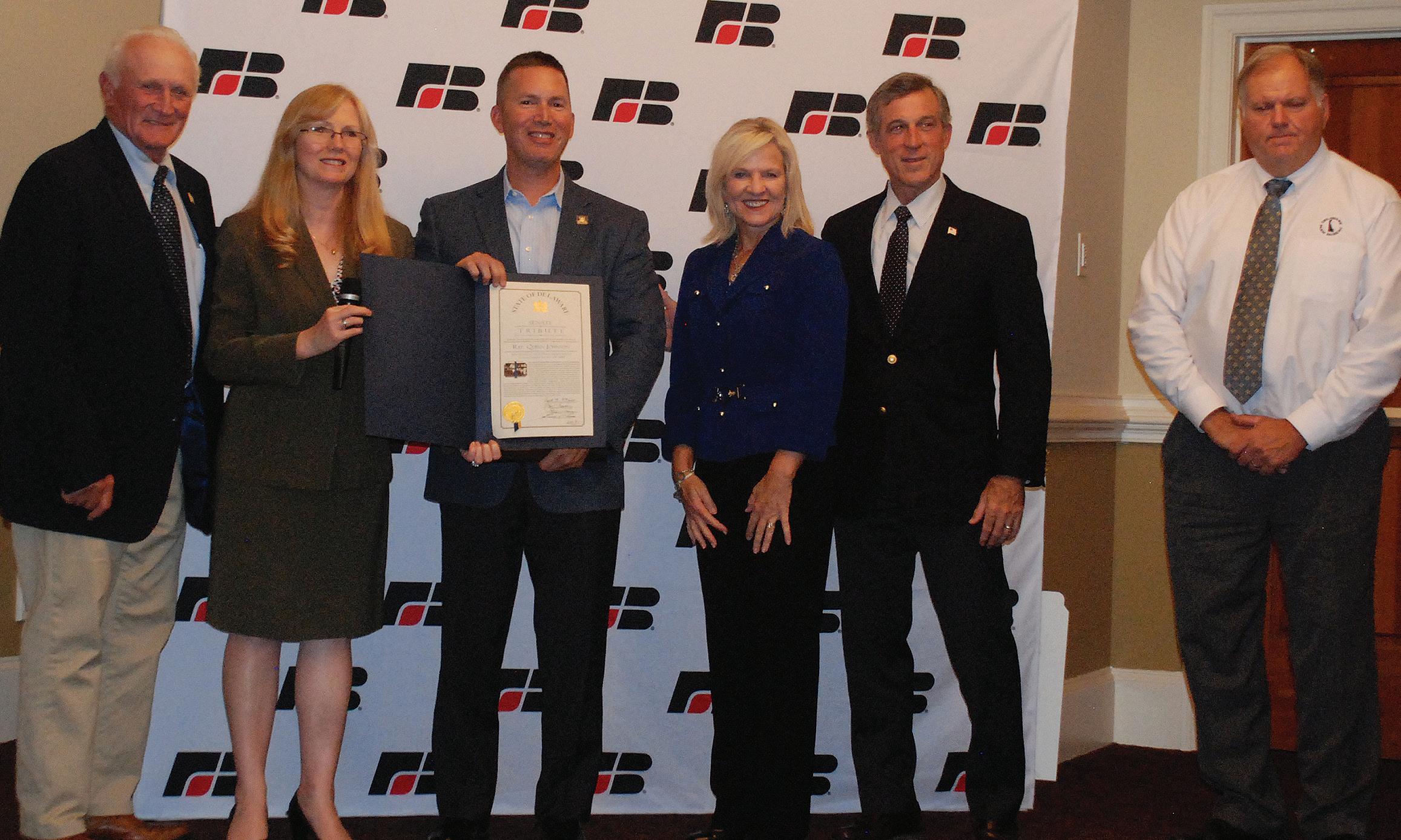 Bill Powers introduced Rep. Johnson, recipient of the Distinguished Service to Agriculture Award. Johnson was elected in 2008 as a member of the Delaware House of Representatives for the 8th District, which includes the greater Middletown area. In the past 11 years he has served as a member of many important committees and chaired some of them.