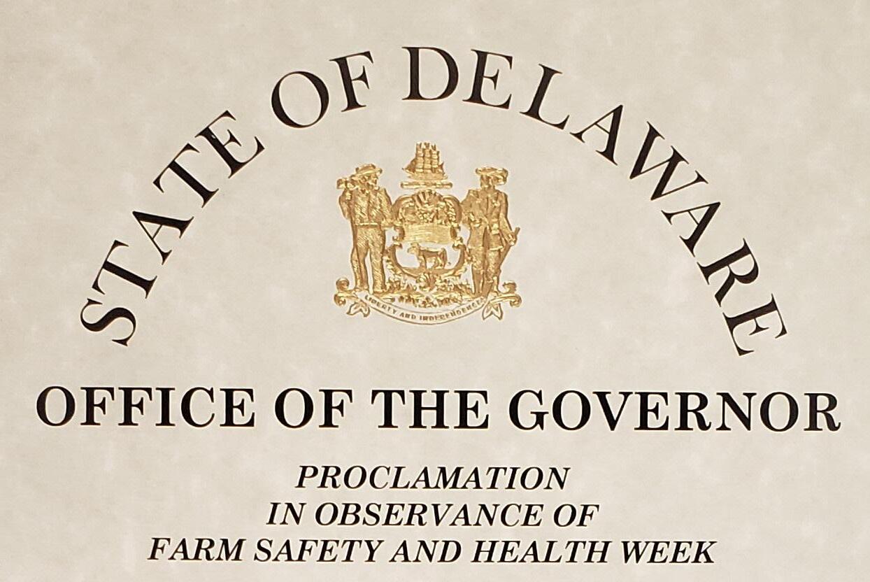 The proclamation was signed by Gov. Carney and Lt. Gov. Bethany Hall-Long and offered a glimpse of the importance behind National Farm Safety and Health Week.