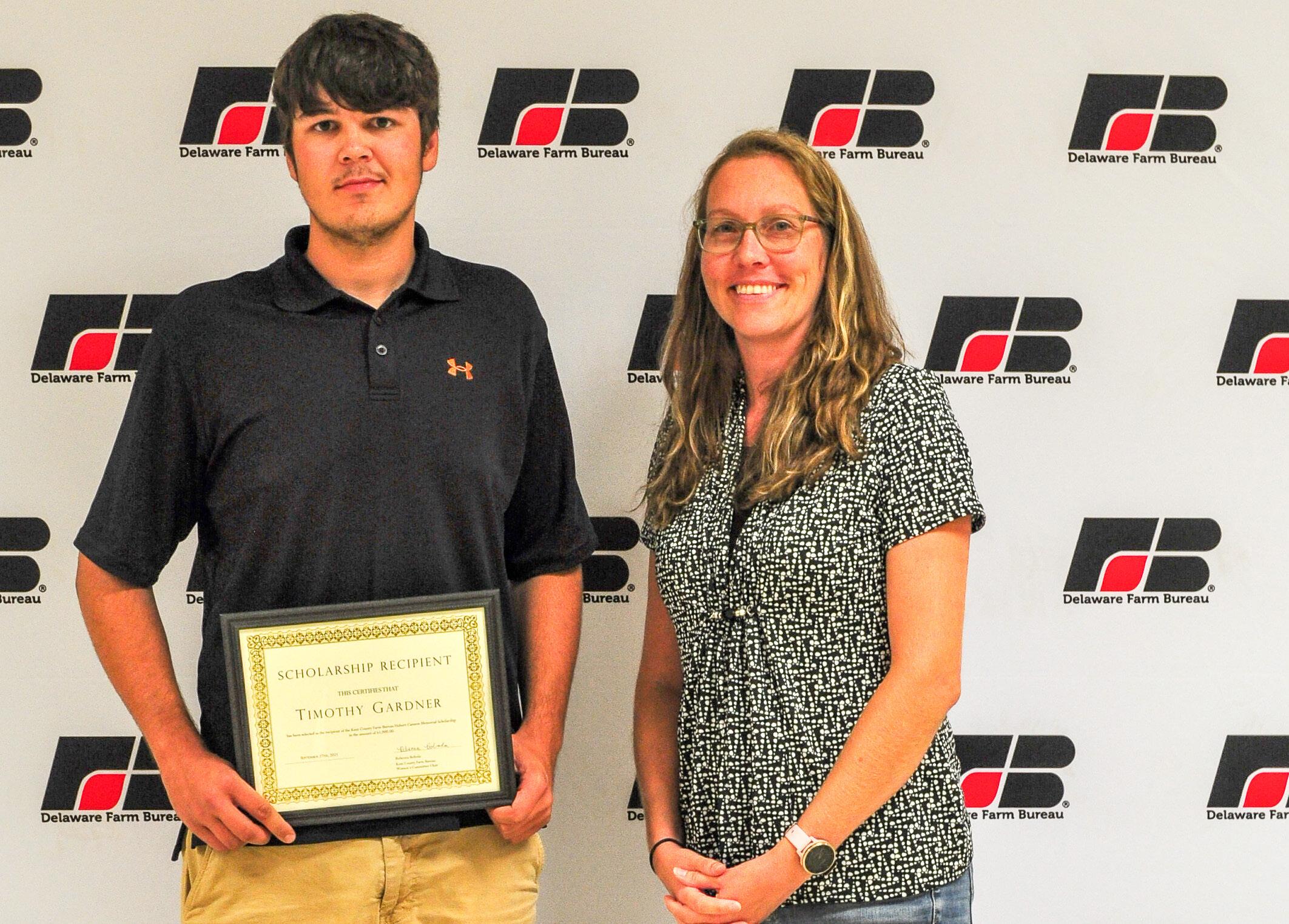 Timothy Gardner, above, and Bethany Knutsen, to the right, are presented with scholarships from the Kent County Farm Bureau.