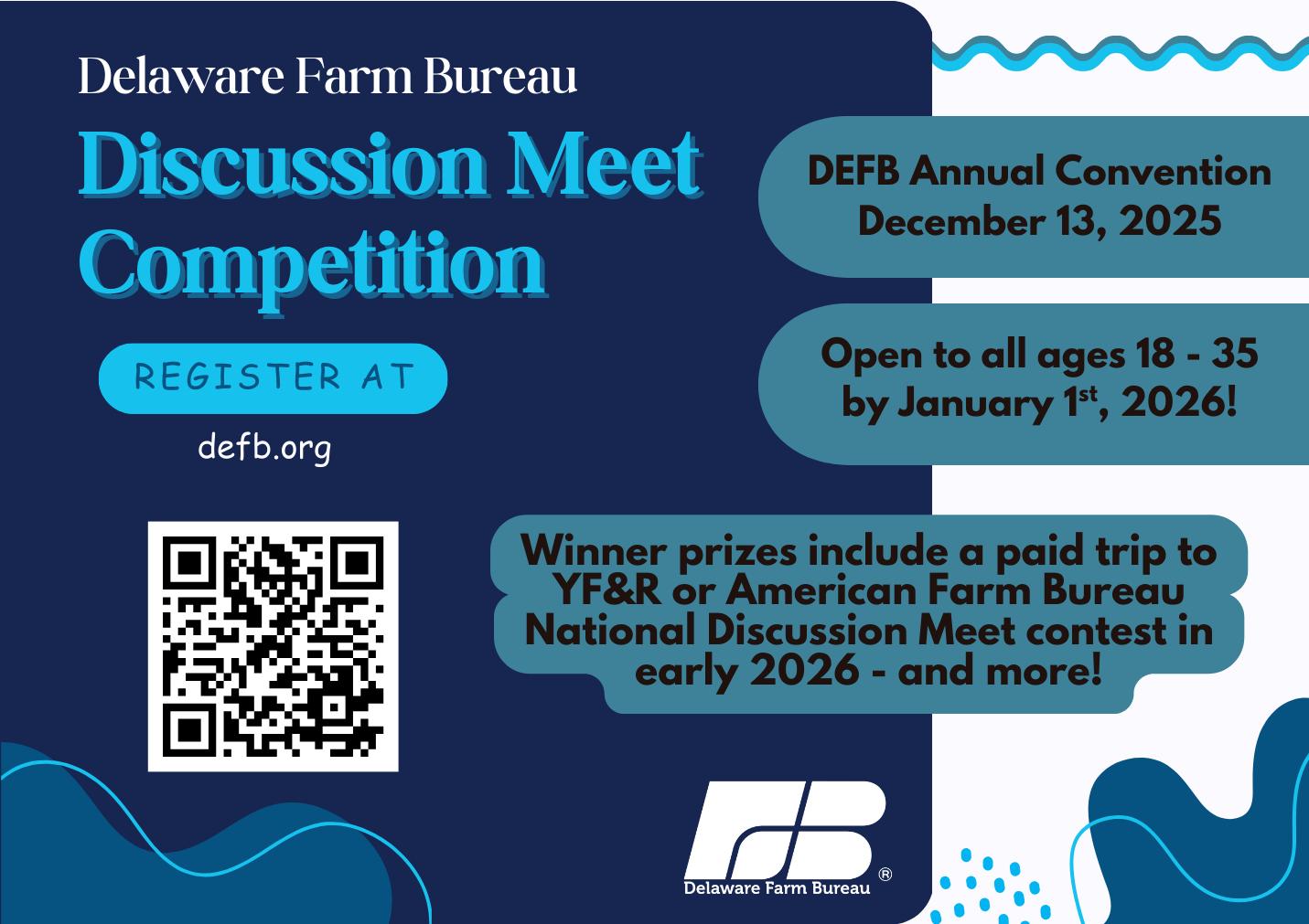This year’s annual meeting will kick off our two-day DEFB Convention on December 12 and 13. It’s a special time to gather, connect, and make decisions that impact not only our farms but our entire agricultural community. Your engagement as a delegate plays a direct role in shaping the policies that guide our work—not just within the Farm Bureau, but also at Legislative Hall.