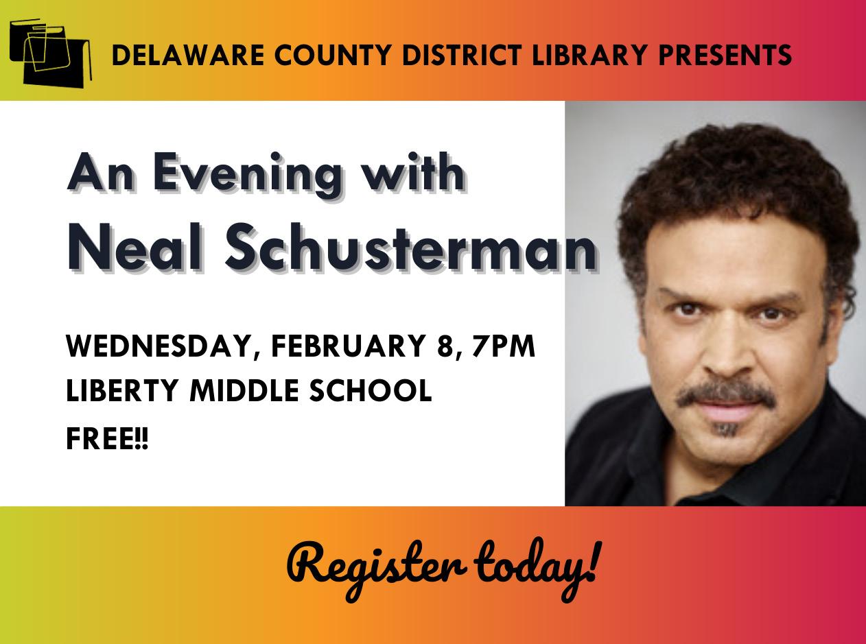 Author Visit: Neal Shusterman Award-winning novelist, screenwriter, and television writer Neal Shusterman will discuss his popular “Arc of a Scythe” series as well as his personal story in a highlyengaging keynote presentation.