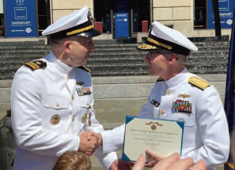 On Christmas Day 2015 while spending time with his wife, Navy Lieutenant Commander Jeff Krilla ’87 plunged into the water and saved the lives of three swimmers caught in a rip tide off Miami Beach. He battled intense waves for forty-five minutes, swam hundreds of yards offshore to reach the children in distress, and successfully towed them to safety. On May 17, 2025, the US Navy awarded him the Navy and Marine Corps Medal in recognition of his extraordinary heroism. The Navy and Marine Corps Medal is the highest non-combat decoration awarded for heroism by the U.S. Department of the Navy. The award was presented on May 17, 2025, by Rear Admiral Michael Brown, USN