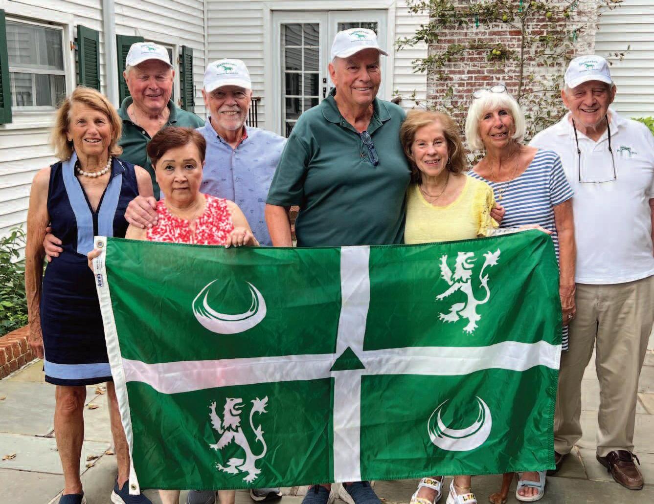 From left in the group photo are Ann McNamara, Jack McNamara ’59, Mai Percarpio, Tim Percarpio ’59, Bill Moran ’59, Karen Gerson, Peggy McFadden and Bill McFadden ’59