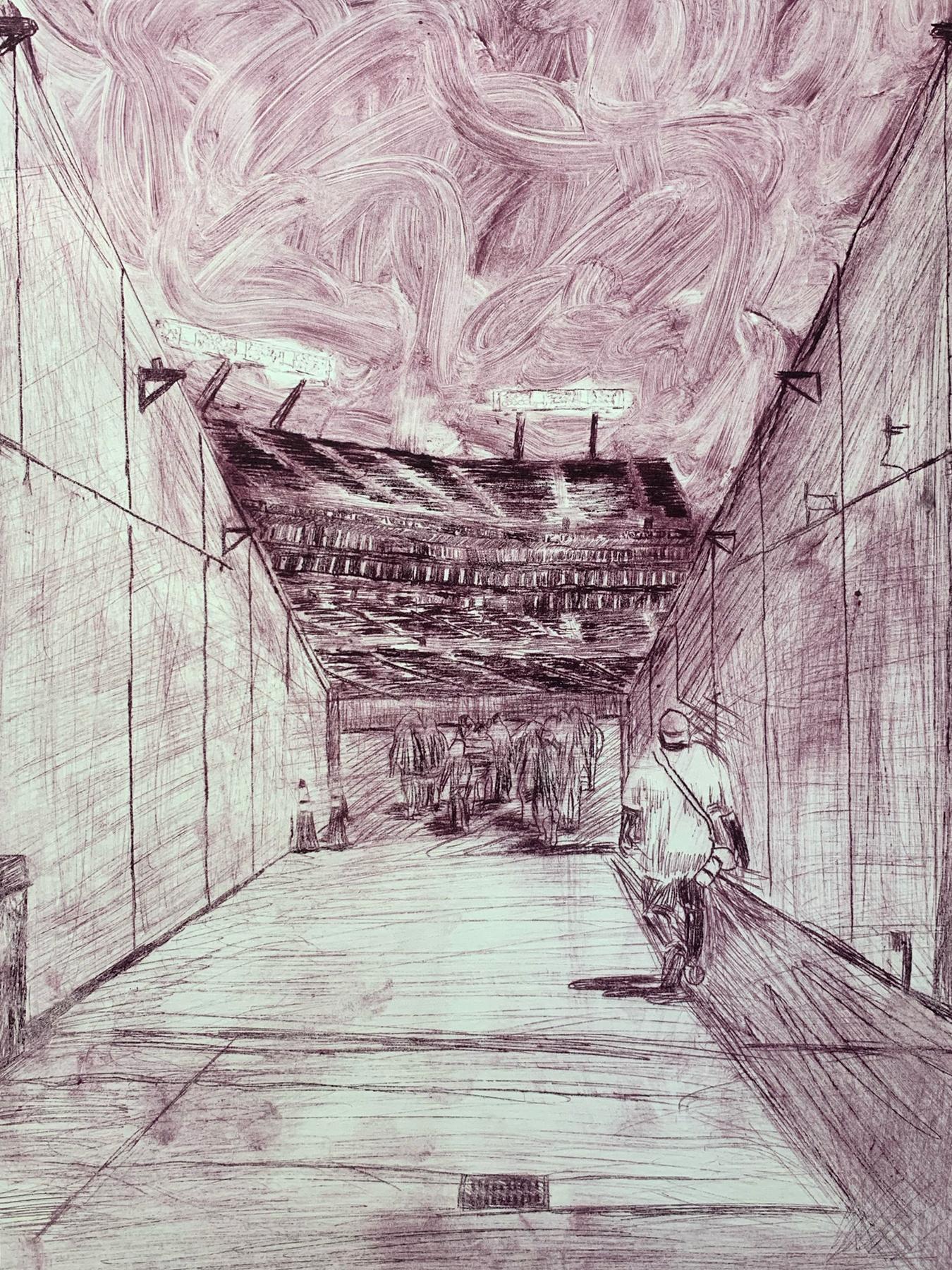 The youth stood waiting, and the man took his hand, they vanished into the bleak dawn. The man could hear, faintly, a voice calling out. He answered, but another’s voice spoke his words, “...it will be okay. I am at peace.” Now he resides beside the Church, in an padded apartment with a pitchblack door, an ivory latch, and cedar walls.