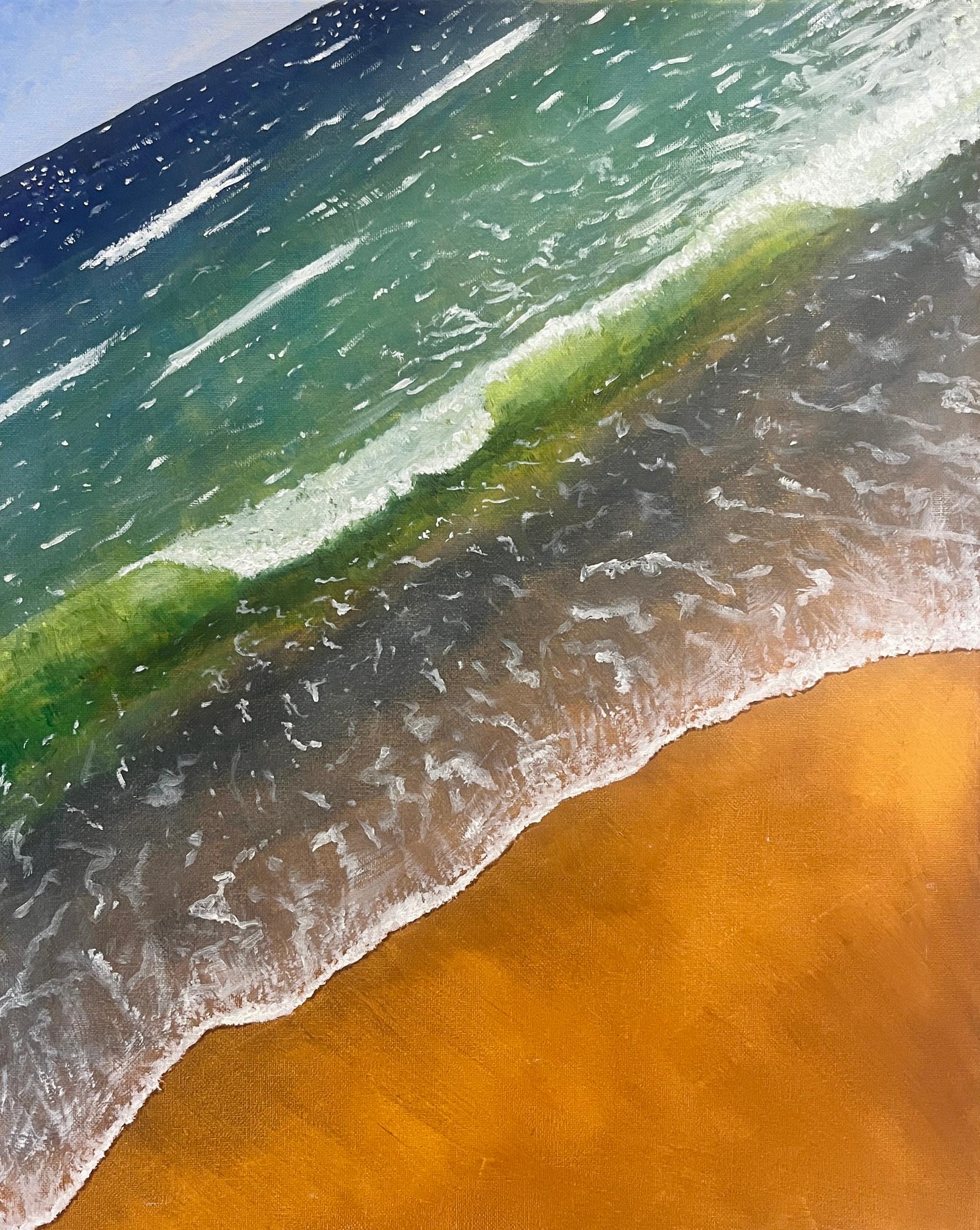 I dive under the wave just in time, and I hear the sound of the wave crashing above me.