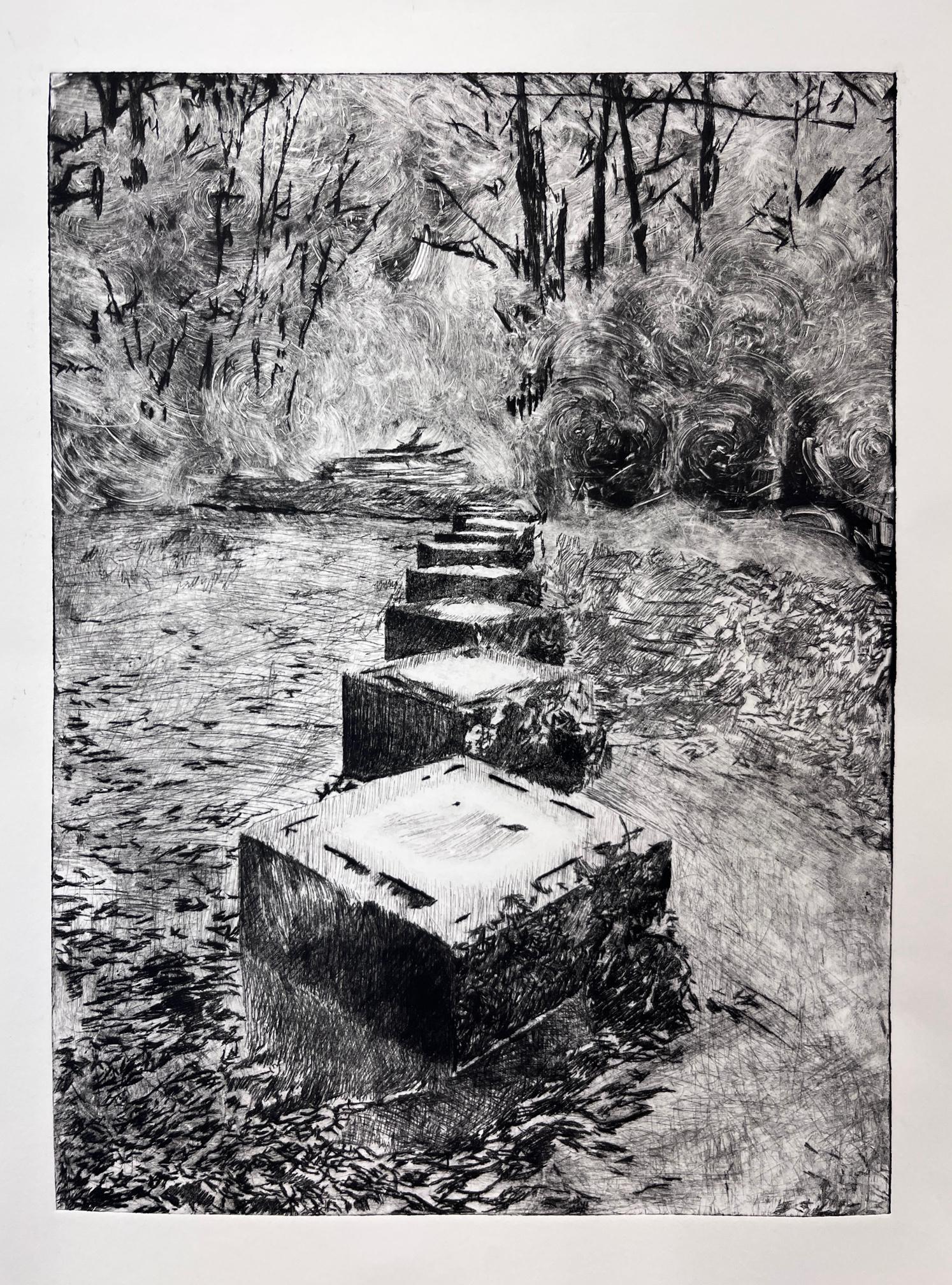 …rock lies alone in the morning sun. He calls out for his friends, and hears no one. All the while stuck in an invincible hold, waiting, just waiting, for nature to be bold. A river could sweep all the pain away, but the river’s too far from here today.