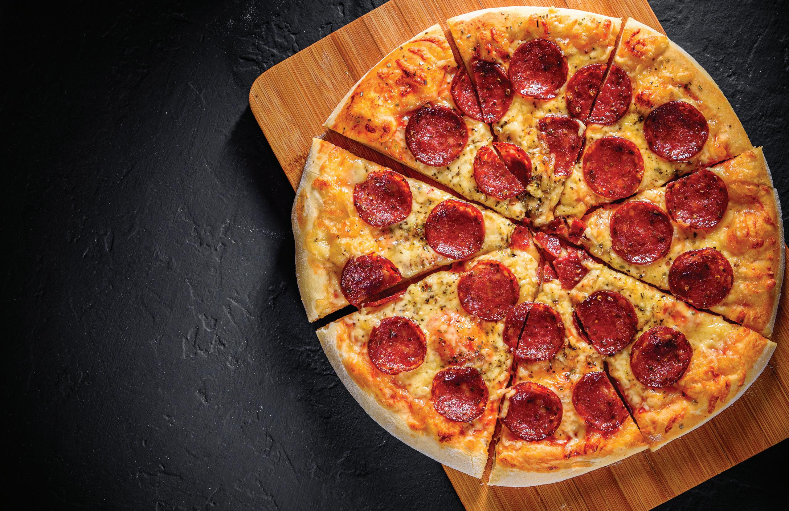 A bold flavor with extra garlic, black & cayenne pepper, and paprika. This pepperoni resists cupping, charring, and grease-out