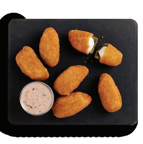 Full-flavored cheddar cheese and spicy diced jalapeño in a light, crispy potato flake breading #1008200 6 / 2.5 lb