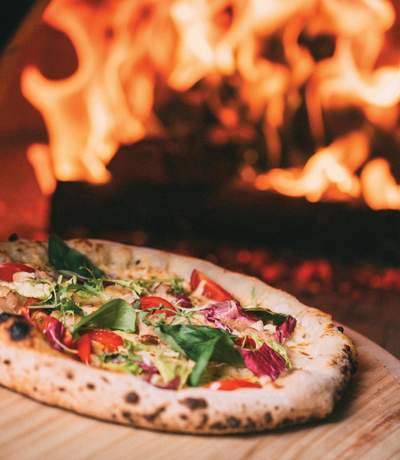 The dough is comprised of wheat flour, yeast, salt, and water and is left to rise for up to 24 hours. It’s shaped by hand into a flat, round disk, about 3 millimeters thick. After that, it’s topped with ingredients and baked for 90 seconds in a blisteringly hot (around 900°F) wood-burning oven. The result is a soft, elastic heart with a tall, fluffy crust.