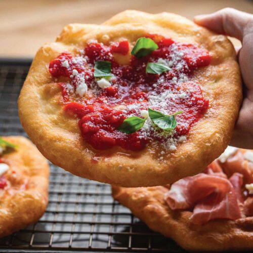 A classic Neapolitan street food, pizza fritta is fried pizza dough. It comes in many different shapes and forms. For example, montanara is round while calzone is shaped like a half moon. Like many other great things in life, pizza fritta was born out of a crisis. After World War II, the price of mozzarella and wood for the ovens increased dramatically. In order to continue to serve their staple dish, cooks in Napoli decided to fry the dough instead of baking it, filling it with ingredients they had on hand instead.