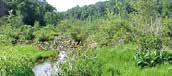 Figure 2. Former coal mine reclaimed in the 1990s with techniques common for that era. The area of former hardwood forest is now dominated by shrubs and non-native species.