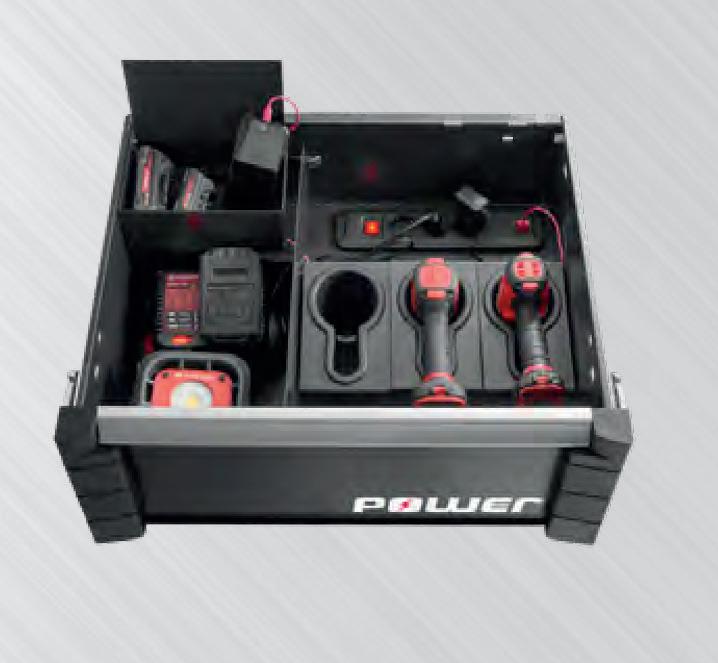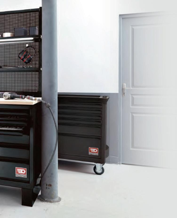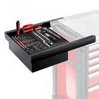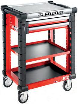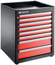 Lades zijn 100% te openen en kunnen eenvoudig onderling verwisseld worden (om bijv. de diepere lade bovenaan te hebben). Statische belasting 1000 kg. Wieldiameter 125 mm. Rood: RAL3020 en zwart: RAL9005.