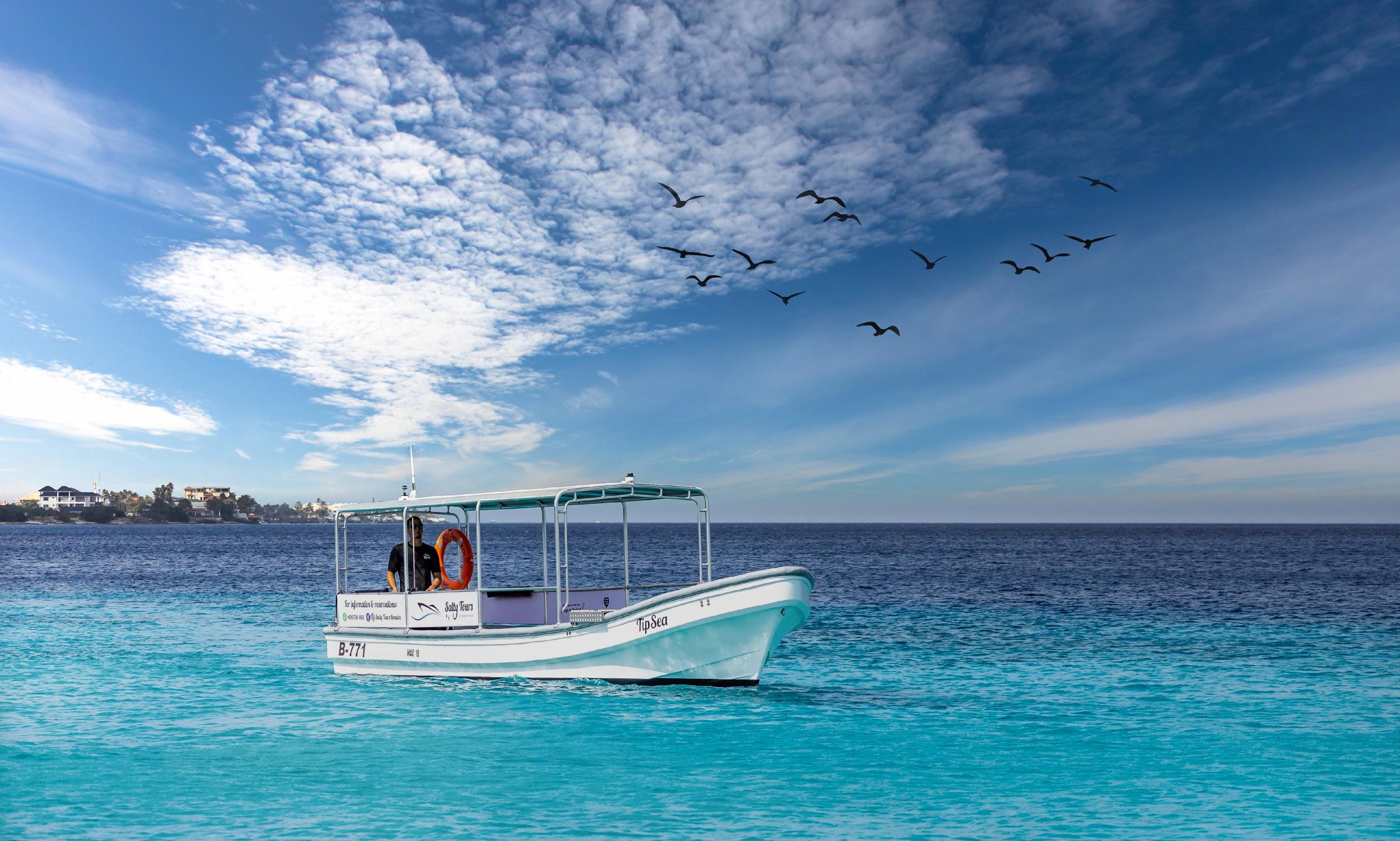 A SMALL, LOCALLY OWNED BOAT TOUR COMPANY FOUNDED BY A COUPLE THAT MET IN THE CARIBBEAN. JORDAN, THE CAPTAIN WHO GREW UP ON BONAIRE AND HAS LOCAL KNOWLEDGE OF ITS WATERS AND SURROUNDING MARINE LIFE. HE LOVES FISHING! GALINA, IS HIS PARTNER, CREW MATE AND CHEF.