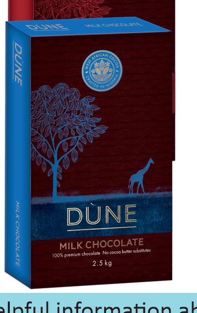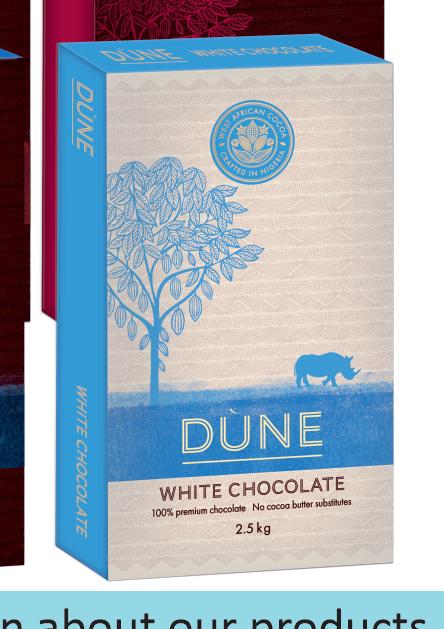 Price/carton: N16,000 Price/piece: Price/carton: Dune Chocolate Block 2.5 (4 units/carton) N31,500 N12,600