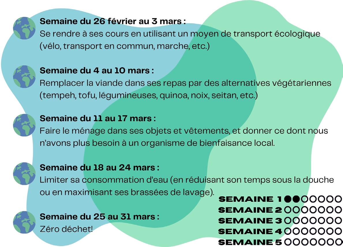 pour lutter contre l’éco-anxiété, ou contacter le Centre de bien-être des étudiants de McGill. » D’autres ressources pratiques comprennent entre autres l’application « Ça va où? » pour mieux savoir recycler, les conseils d’Hydro-Québec pour réduire sa consommation d’électricité, etc. Par ailleurs, la formation fournit une liste de cours reliés à l’environnement, des opportunités de recherche dans le domaine, et bien d’autres ressources auxquelles vous n’aurez accès qu’en complétant le module. Réaliser la formation donne aussi la possibilité d’obtenir des crédits co-curriculaires reconnus par l’Université. Ceux-ci peuvent être un avantage précieux sur un CV, car ils attestent de l’engagement de l’étudiant·e à des activités d’apprentissage en dehors de la salle de classe.